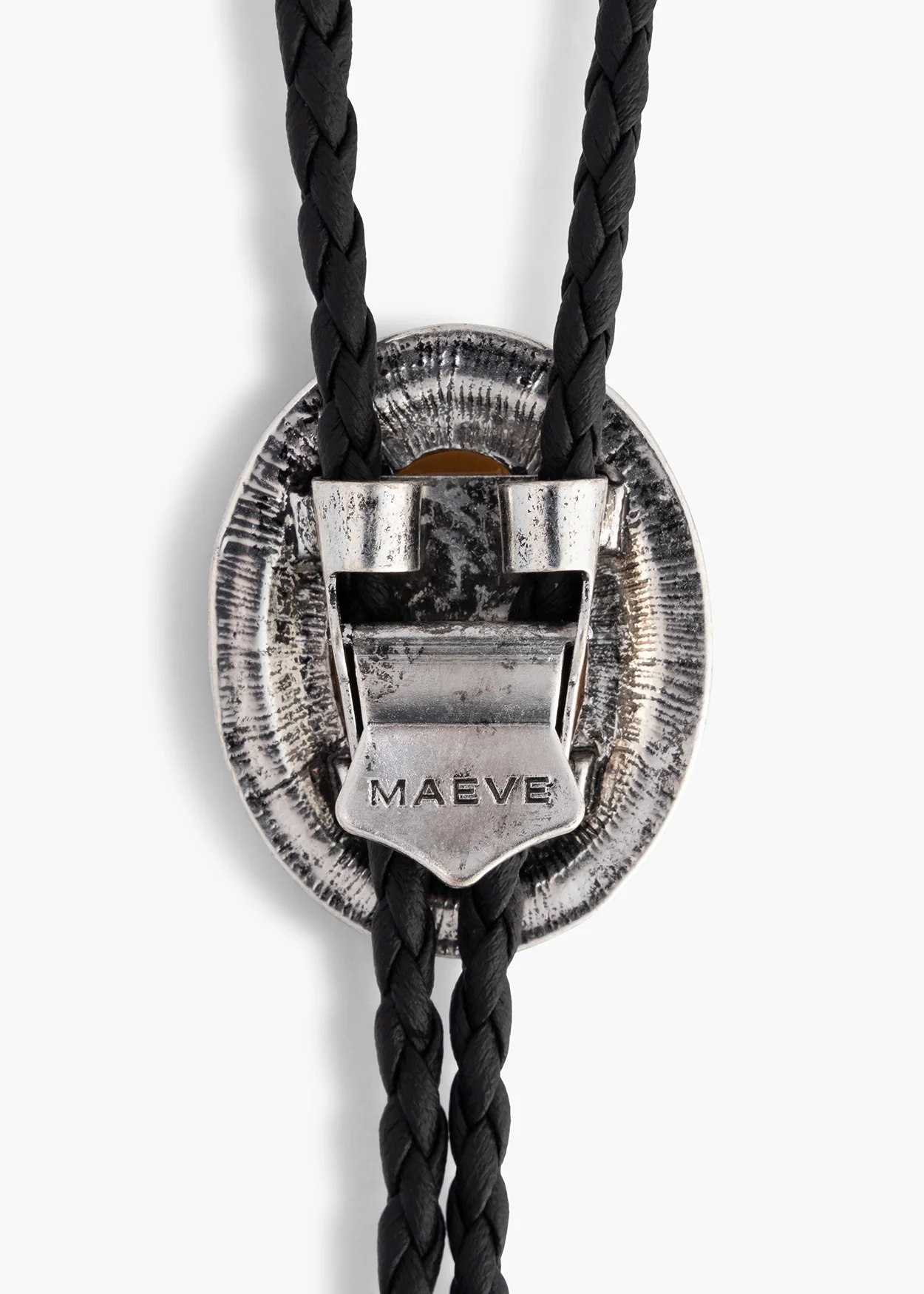 This charming Bolo Tie has a unique silver design with light Brown stone as centerpiece. An accessory to make your outfit unique, from a special occasion to an everyday wear.