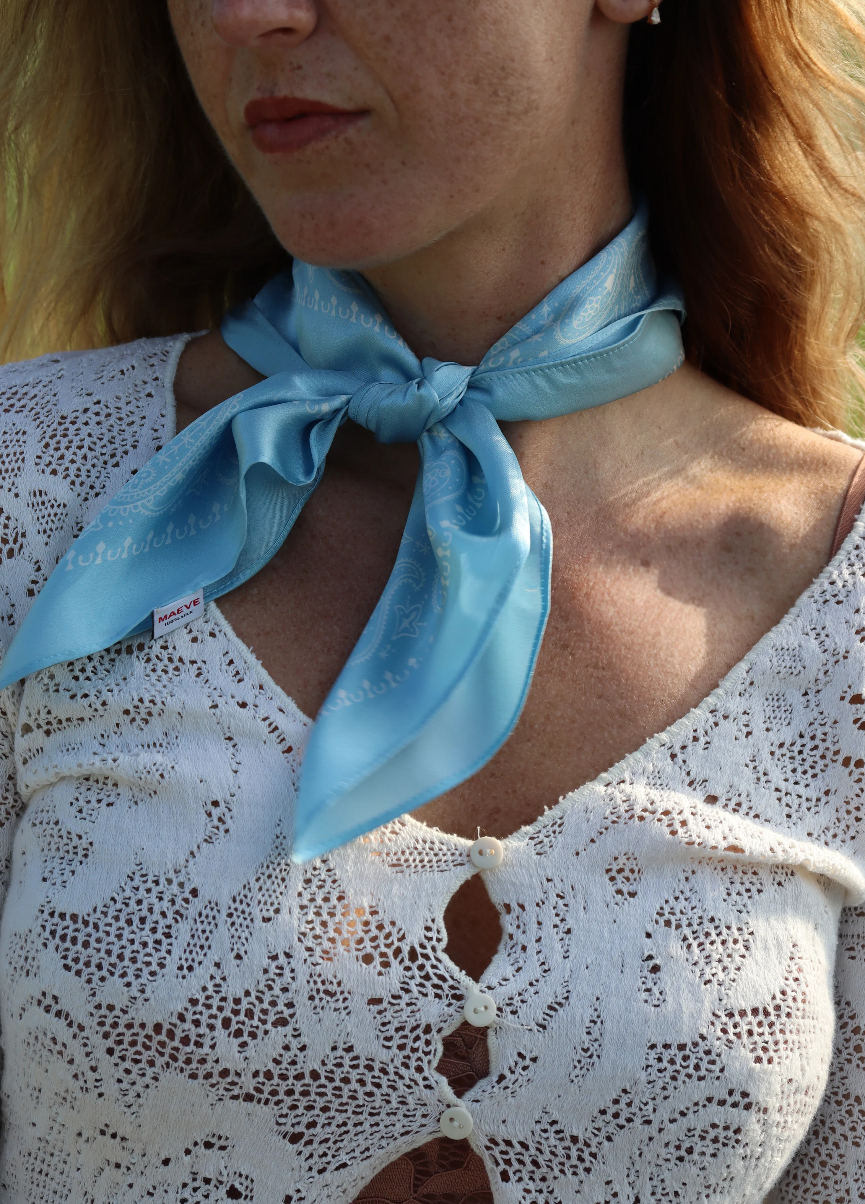 Made from 100% Silk, the Celeste Pastello Paisley Bandana brings a soft fine touch to your everyday style. The beautiful light blue shade—our Celeste Pastello—is a pastel-toned azure that feels fresh and easy to wear. With its classic Paisley pattern and smooth Silk finish, this bandana adds a gentle accent of color to any outfit. Tie it around your neck, in your hair, or on your bag for a stylish look.
