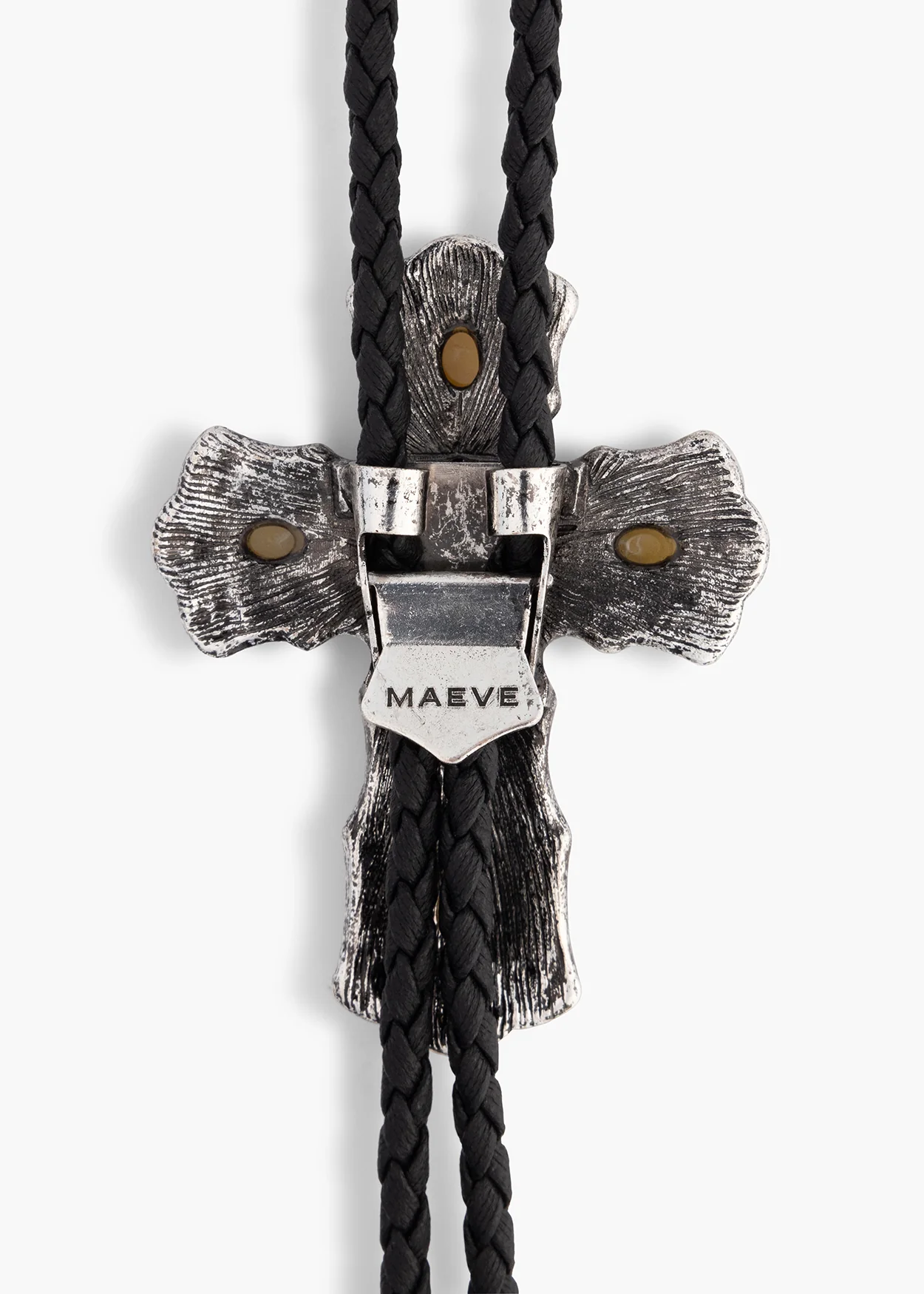 This unique bolo features a antique silver buckle cross, adorned with a combination of beige and turquoise gems. A piece that will stands out to make your outfit even more stylish.