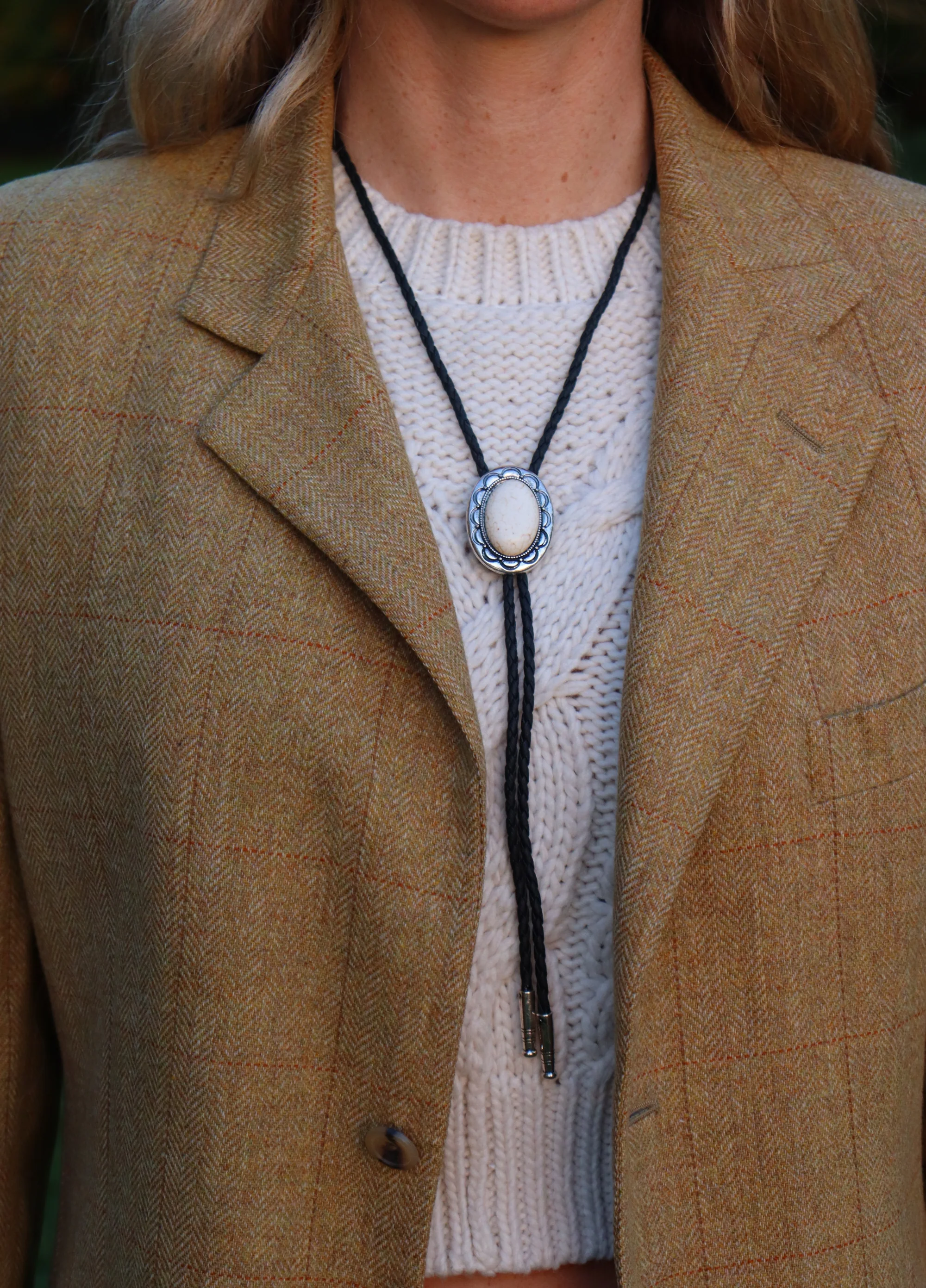-70%White flower gem Bolo Tie—